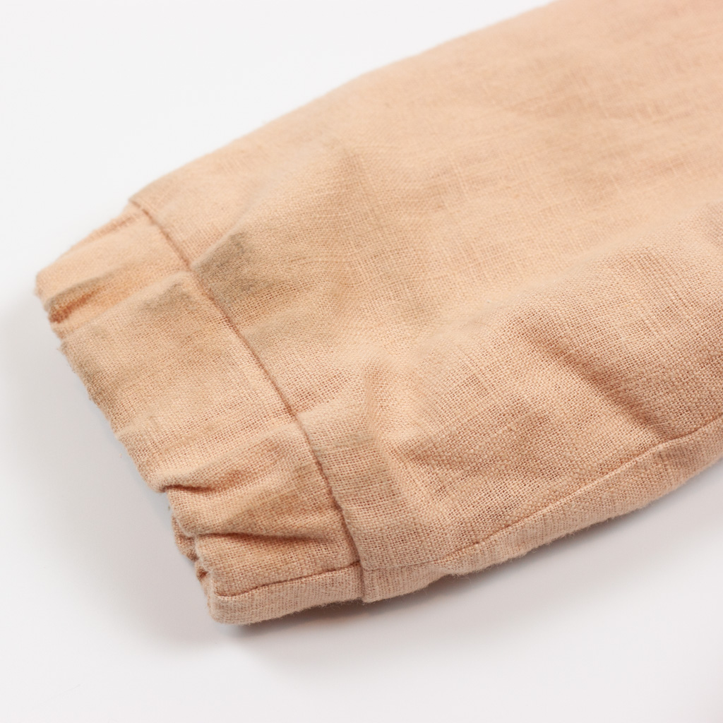 Donsje Jacke aus Leinen, Modell Filein, elastische Ärmelabschlüsse und Saum, großer Kragen mit gestickten Verzierungen, Reißverschluss. Hinweis: deutliche Verschmutzungen vorhanden.